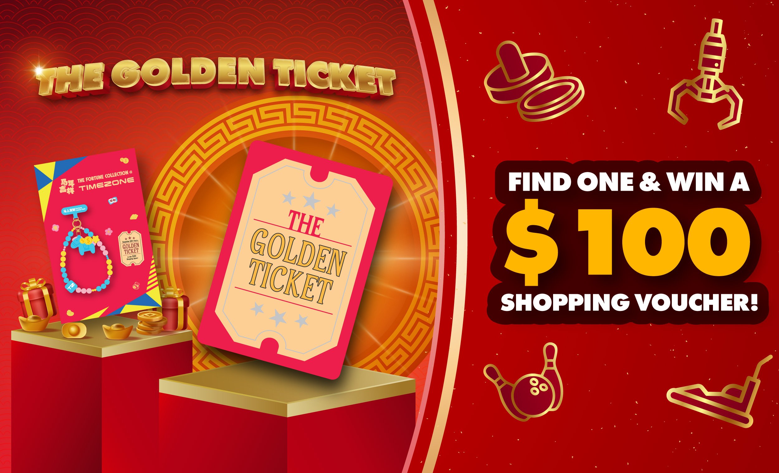 - Guests who find a Golden Ticket may redeem it for a $100 shopping voucher at the venue counter from 30 January to 28 February 2026. Strictly no extensions will be granted.