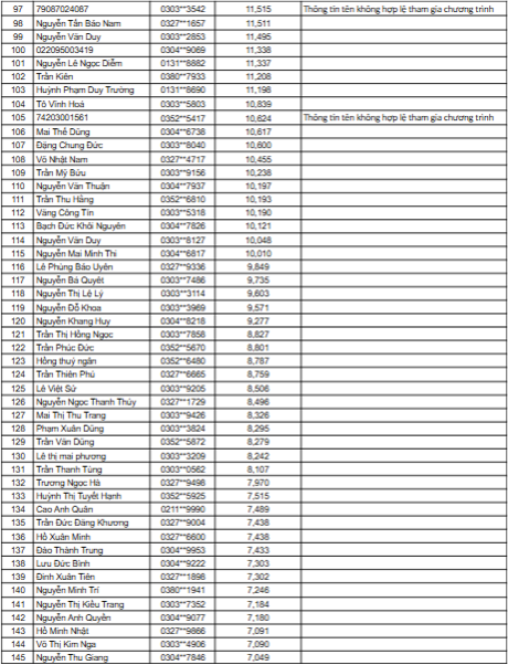 - Thời gian khách hàng nhận thưởng voucher từ 03.03 – 05.03.2026. Đối với Top 05 mã thẻ thắng giải đặc biệt, khách hàng sẽ nhận thưởng trong vòng 30-45 ngày (được tính từ ngày công bố và liên hệ nhận giải).
