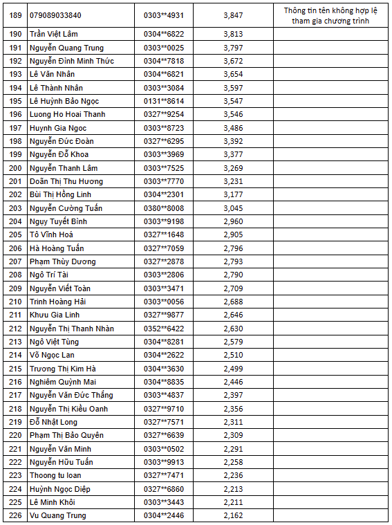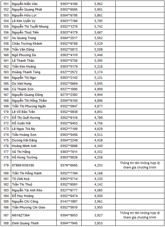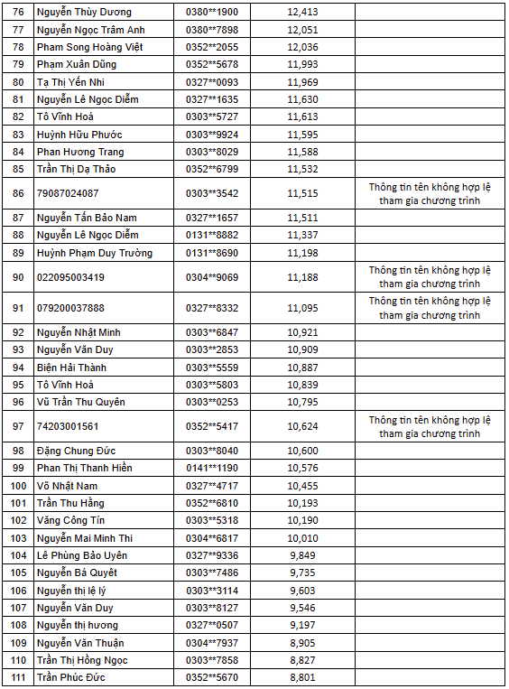 - Thời gian khách hàng nhận thưởng voucher từ 03.03 – 05.03.2026. Đối với Top 05 mã thẻ thắng giải đặc biệt, khách hàng sẽ nhận thưởng trong vòng 30-45 ngày (được tính từ ngày công bố và liên hệ nhận giải).
